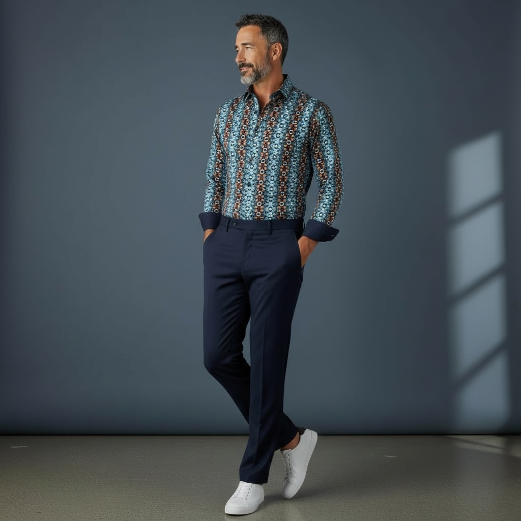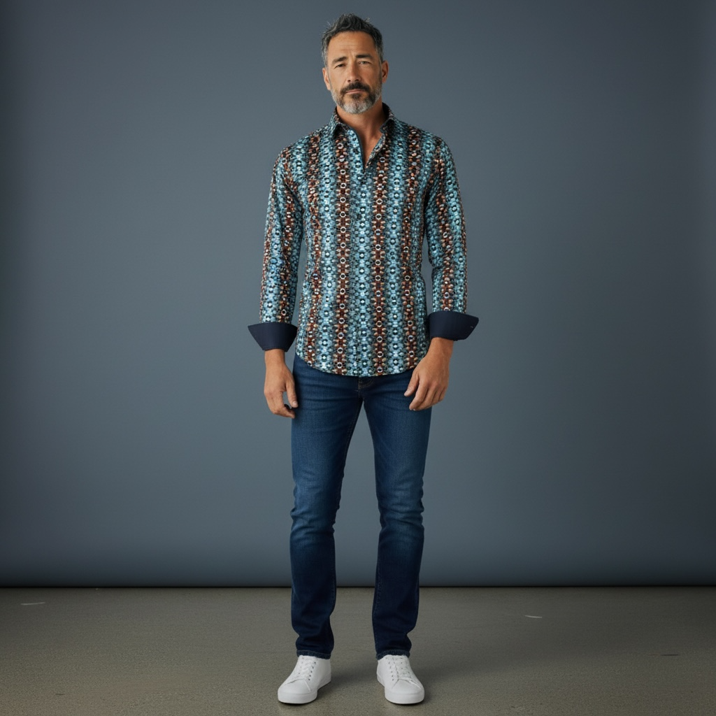 Ein modernes geometrisches Hemd für den modebewussten Mann.