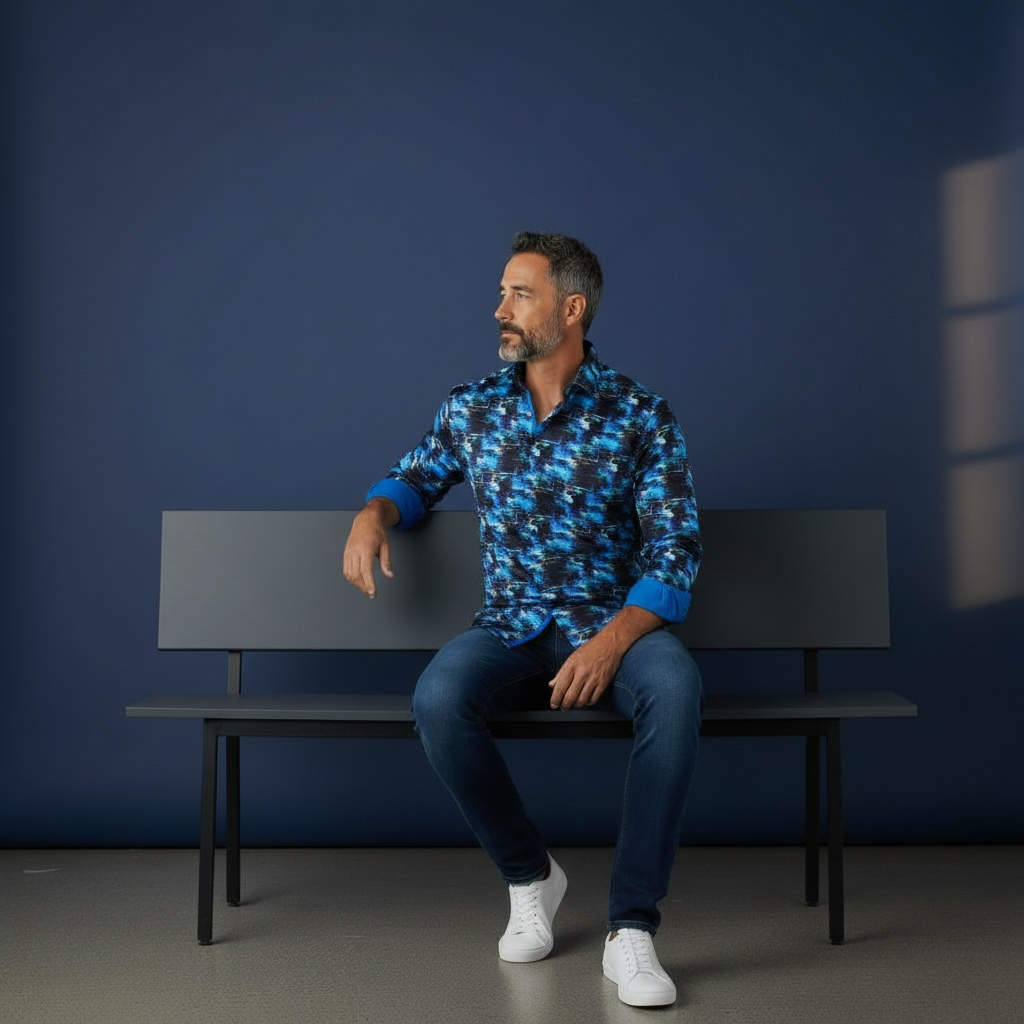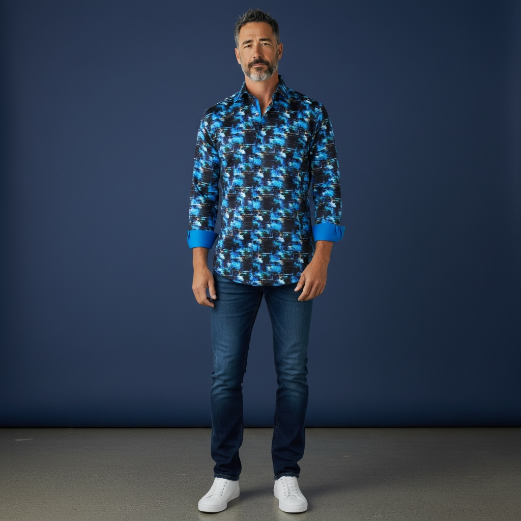 Ein Hemd mit Rich Blue Black Print für einen auffälligen und stilvollen Look.